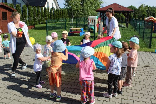 Czerwiec to początek lata i czas wyczekiwania na wakacje, dlatego wspólnie spędzamy jak najwięcej chwil na podwórku, na placu zabaw. W czerwcu rozpoczęliśmy cykl zajęć z zawodoznawstwa. Z tej okazji gościliśmy Pana Marcina, trenera grup młodzieżowych piłki nożnej, który w bardzo ciekawy i kreatywny sposób przeprowadził zajęcia, dostosowując stopień trudności zabaw do możliwości naszych dzieci. Projekt „Witaminki” realizowany przez czasopismo „Bliżej Przedszkola” dobiegł końca. Uwieńczeniem tej warzywnej przygody było spotkanie z ostatnim warzywem, a mianowicie Rzodkiewką Renią. Zajęcia tego dnia obejmowały wielozmysłowe poznanie rzodkiewki oraz wykonanie ciekawej pracy plastycznej.