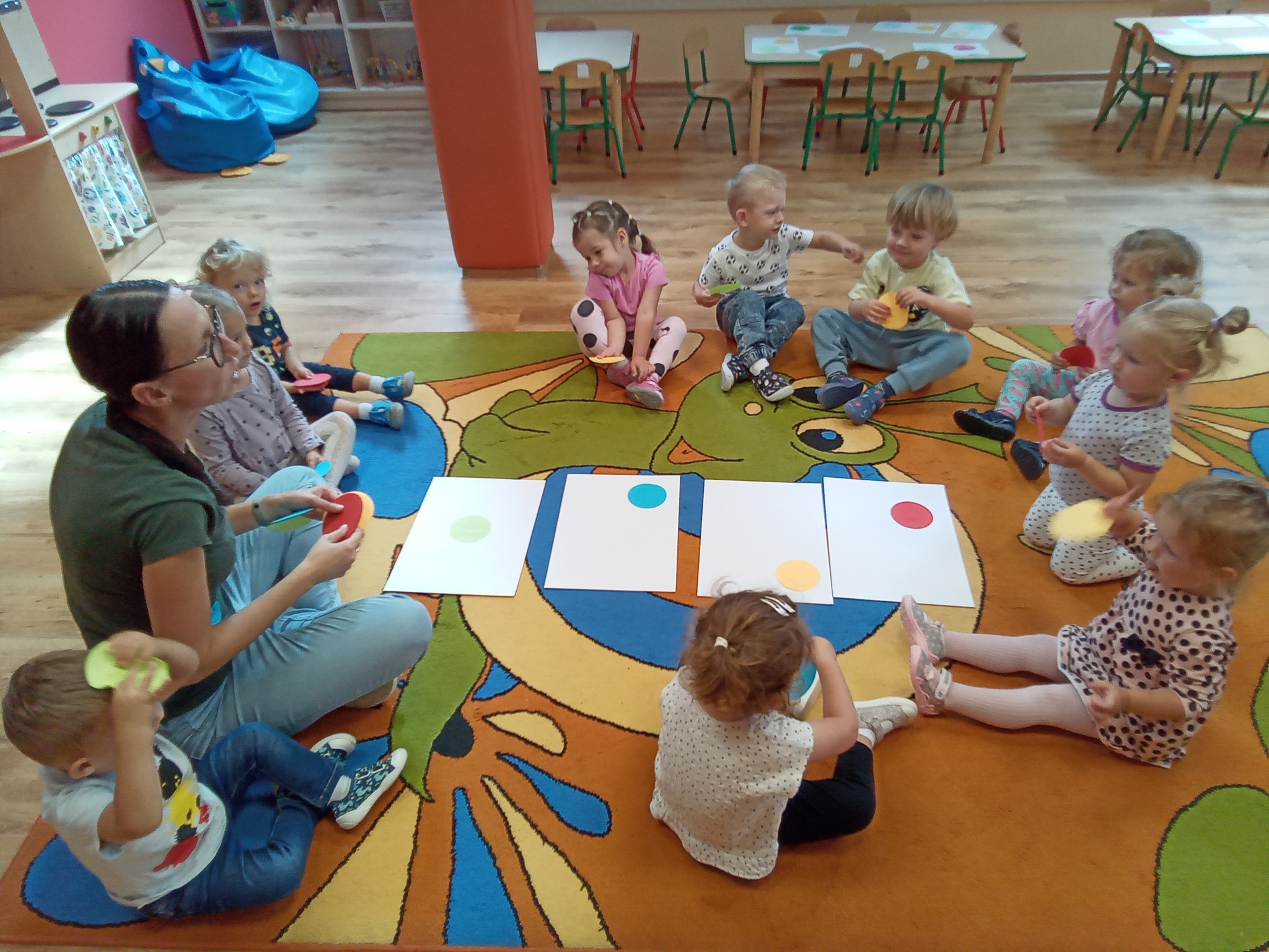 Początkiem miesiąca dzieci miały okazje wziąć udział w projekcie „Zdrowe dzieci” organizowanego i finansowanego ze środków Ministerstwa Zdrowia oraz Norweskiego Mechanizmu Finansowego w ramach programu „Zdrowie”. Dzieci rozpoczęły zajęcia od zabawy ruchowej pt. „Jarzynowa gimnastyka” znakomicie się przy tym bawiąc. Taka aktywność pomaga budować szereg umiejętności motorycznych oraz koordynacyjnych.Jak co roku w naszej placówce, obchodziliśmy Święto Niepodległości. Była to lekcja patriotyzmu dla najmłodszych. Dzieci w ramach zajęć poznały symbole i barwy narodowe oraz wykonały pracę plastyczną pt. „Flaga Polski”.
