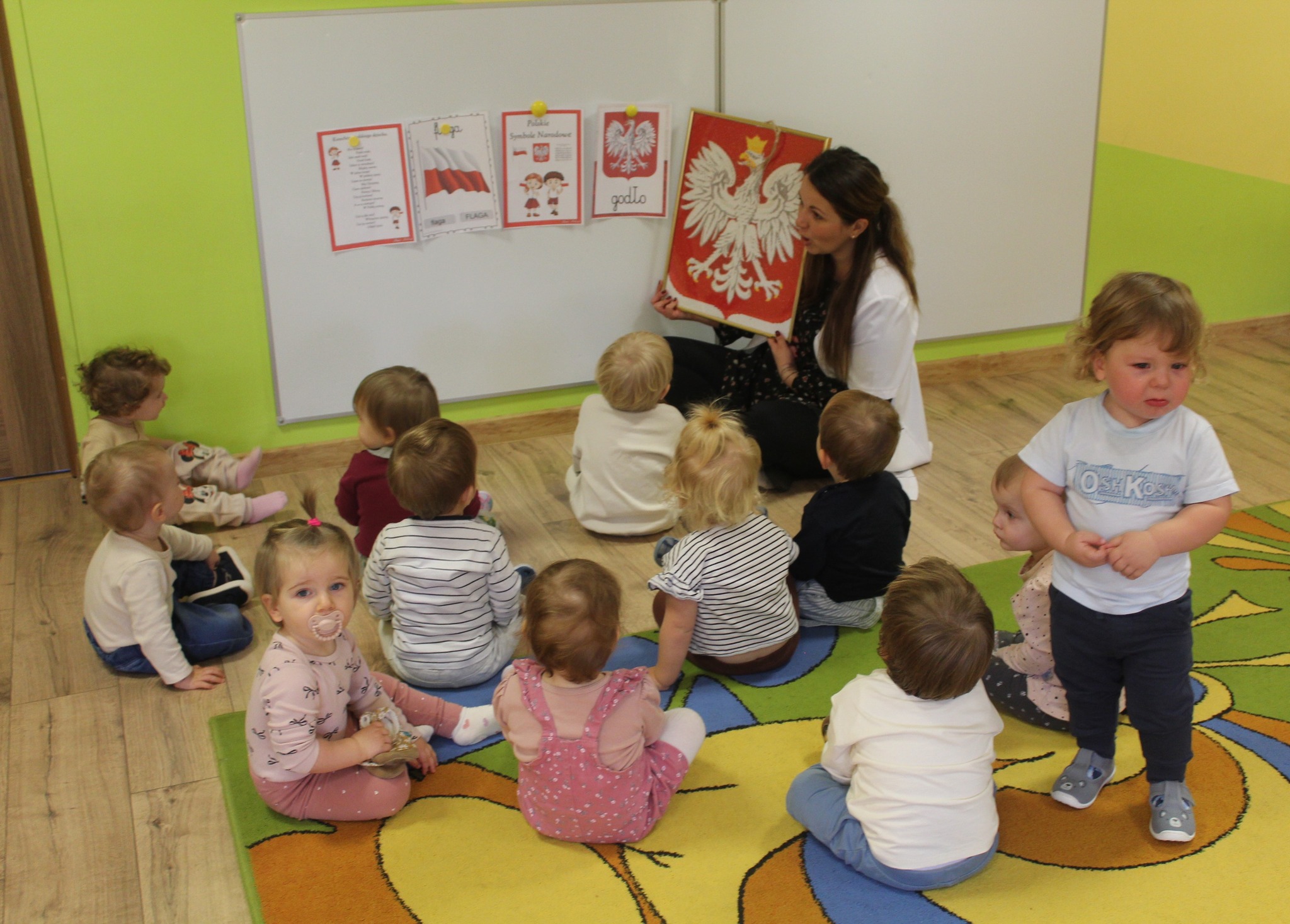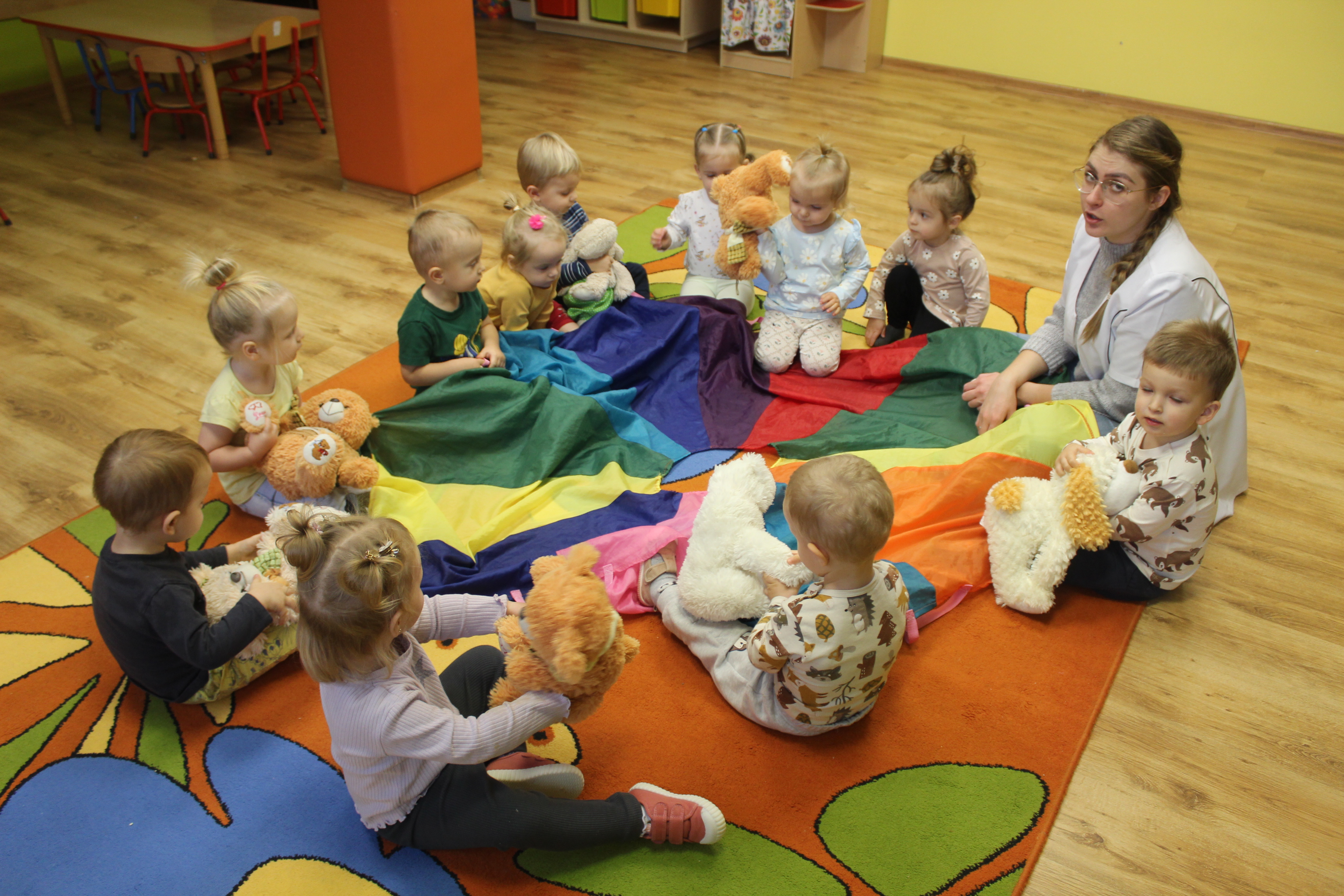 W listopadzie nadal pozostajemy w jesiennej tematyce...To również miesiąc, w którym kultywujemy polskie tradycje oraz kształtujemy w dzieciach wartości patriotyczne. W połowie miesiąca mieliśmy okazję poznać nowe warzywo, a mianowicie: czosnek w ramach projektu ,,Witaminki". Przeprowadzone zajęcia miały charakter plastyczny, muzyczny, ruchowy, a przede wszystkim integrujące grupę rówieśniczą. Ponadto, dzieci wspólnie z rodzicami z okazji Święta Niepodległości przygotowały prace na wernisaż pt. ,,Moja mała Ojczyzna", które ozdobiły żłobkowy korytarz. 25 listopada obchodziliśmy wyjątkowe dla nas święto, a mianowicie ,, Dzień Pluszowego Misia".