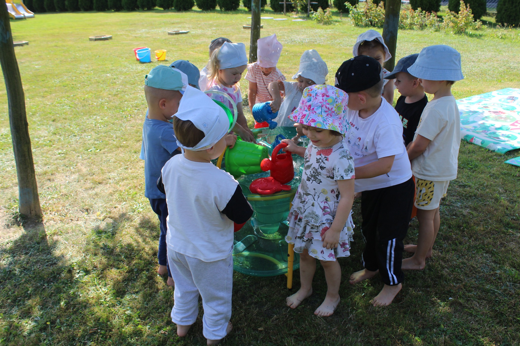 W letnie dni dzieci chętnie spędzały czas na placu zabaw. Oprócz regularnego udziału w zabawach na świeżym powietrzu, dzieci uczestniczyły również w ciekawych zajęciach edukacyjnych m.in. plastycznych, ruchowych, z elementami muzyki i języka angielskiego.