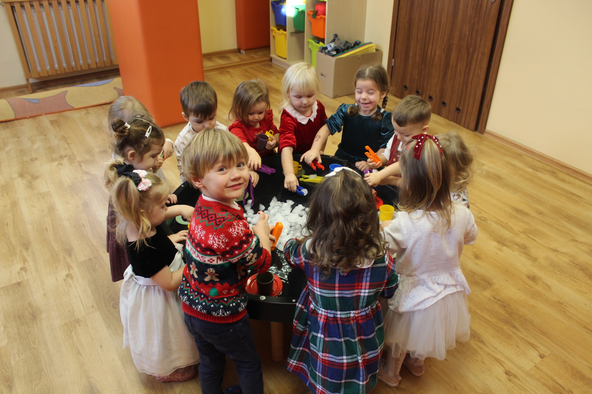 Miesiąc grudzień rozpoczęliśmy intensywnie....Spotkanie ze Świętym Mikołajem 4 grudnia, jak co roku wzbudziło ogrom pozytywnych emocji. 12 grudnia- to dzień niezwykle uroczysty, gdyż odbyło się Spotkanie Wigilijne. Jak co roku wspólnie z dziećmi realizowany jest Kalendarz Adwentowy- tym razem układamy bożonarodzeniowe puzzle! Tematyka zajęć związana jest z tamatyką świąteczną oraz z nadchodzącą zimą. Zajęcia rytmiczne oraz z języka angielskiego mają charakter zimowy. Wspólnie z dziećmi uczymy się kolęd oraz piosenek wporwadzjących w świąteczny nastrój. W dalszym ciągu realizujemy projekt "Witaminki" 2 edycję, tym razem dzieci miały okazję poznać Pora Przemka. Dodatkowo, dzieci brały udział w doświadczeniu z bryłkami lodu, wspólnie robiły pyszny sok owocowy.