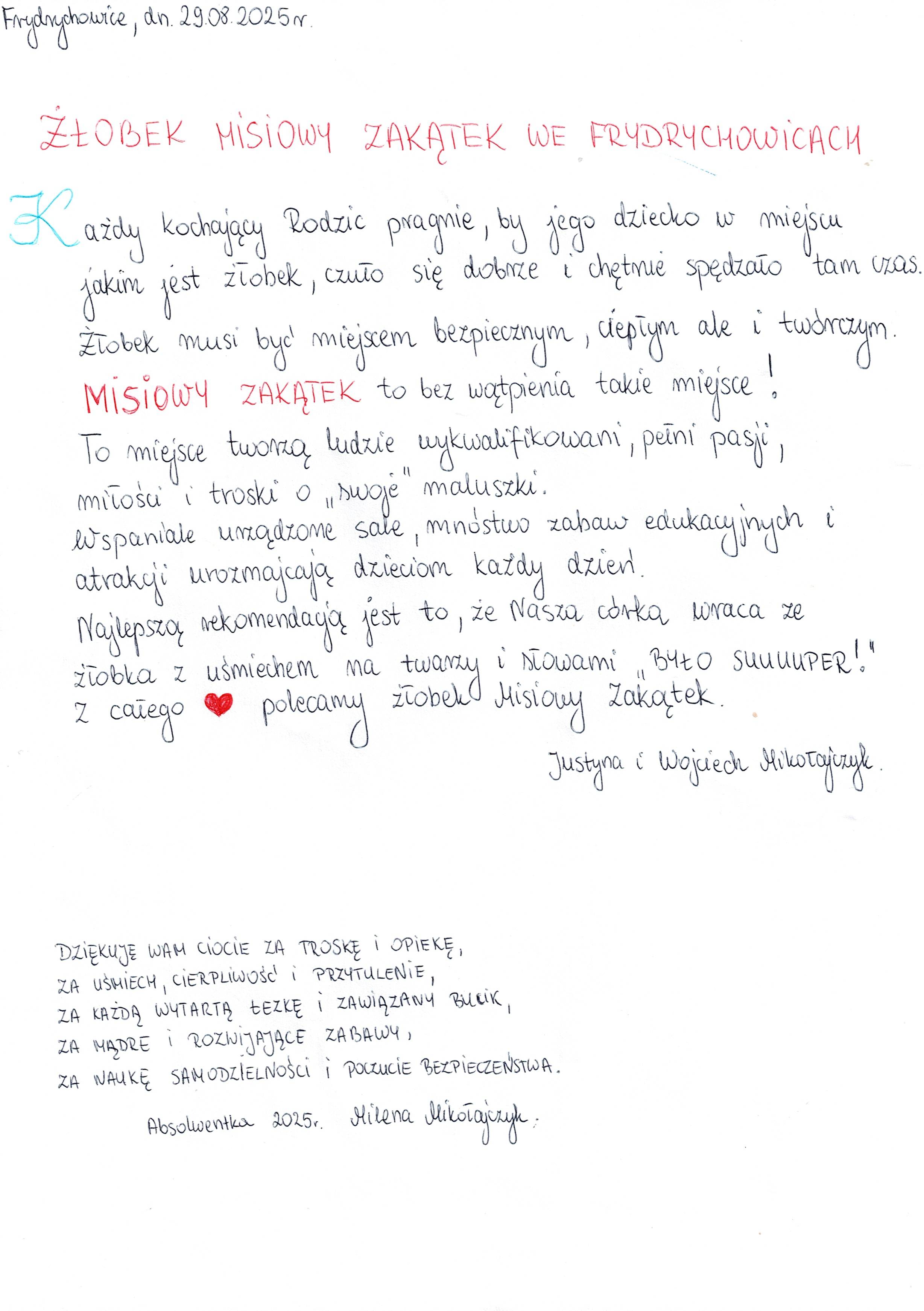 Deklarację sporządzono na podstawie samooceny przez przeszkolonego pracownika żłobka ,,Misiowy Zakątek” we Frydrychowicach.