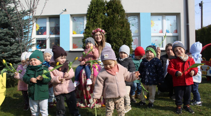 Dzisiaj wielki dzień, gdyż z pięknym i słonecznym dniem zawitała do nas kwiecista Pani Wiosna. Dla naszego gościa kwiatów bukiet mamy i uśmiechy od ucha do ucha. Wspólnie odkryliśmy uroki wiosennej pory roku i zaśpiewaliśmy piosenki.