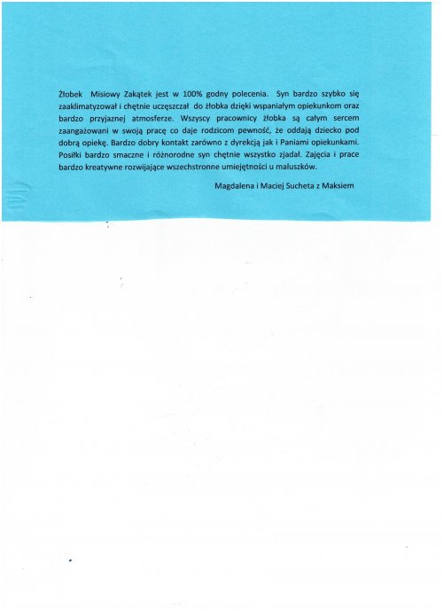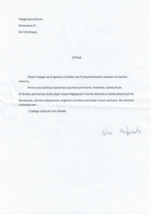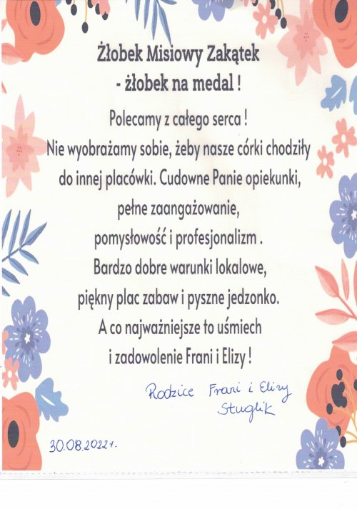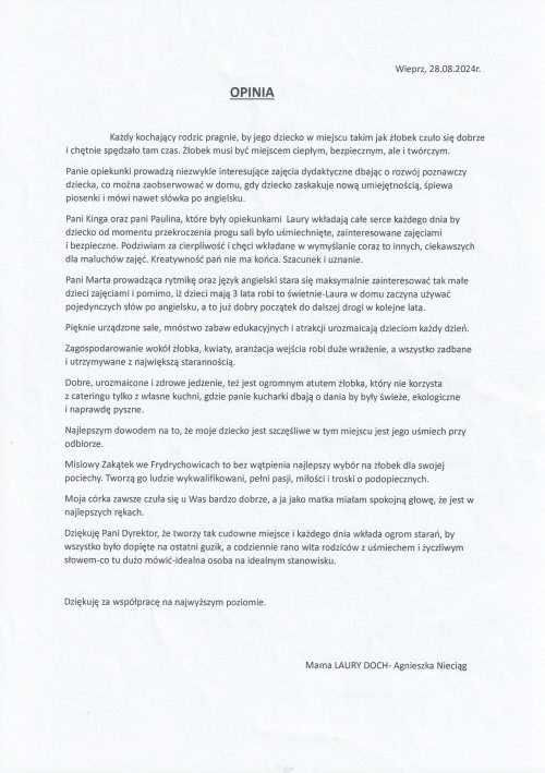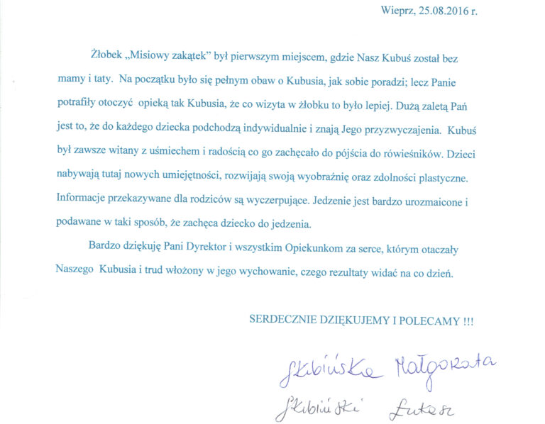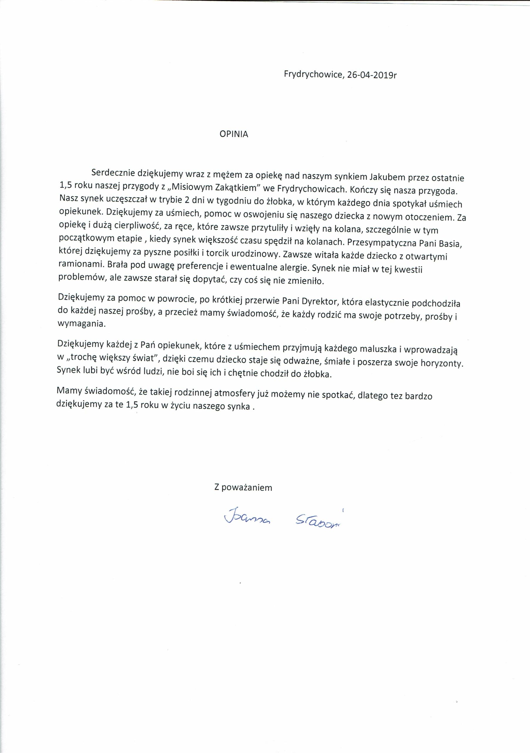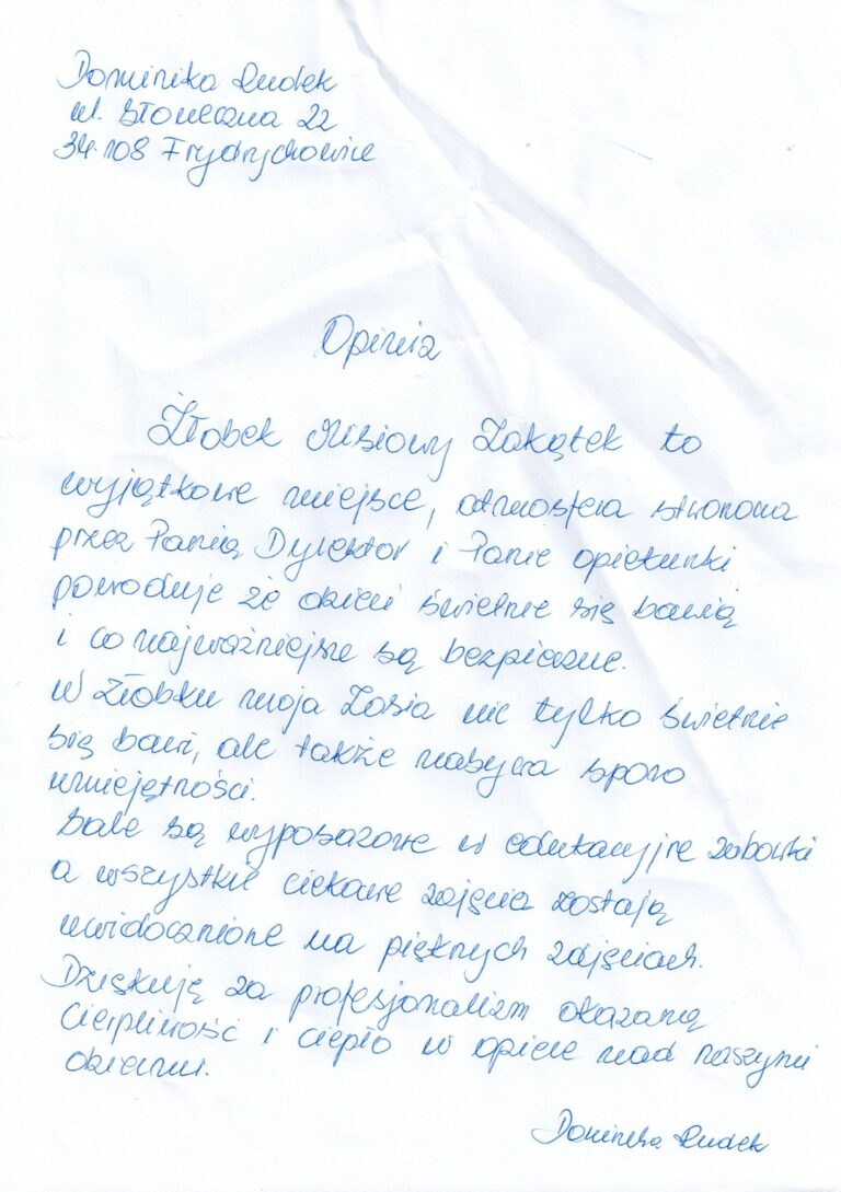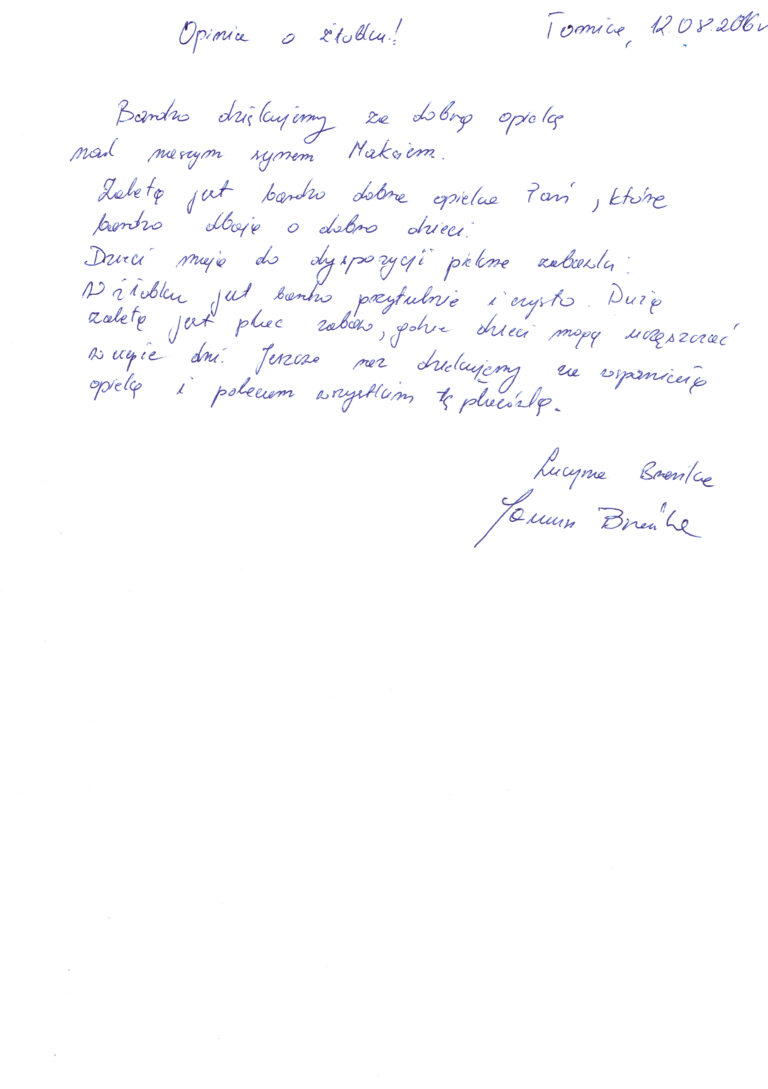 Opinie zadowolonych rodziców i uśmiechy naszych podopiecznych są dla nas najlepszym potwierdzeniem, że tworzymy miejsce pełne bezpieczeństwa, ciepła i radości.