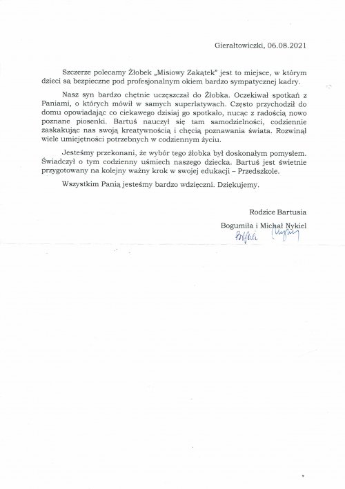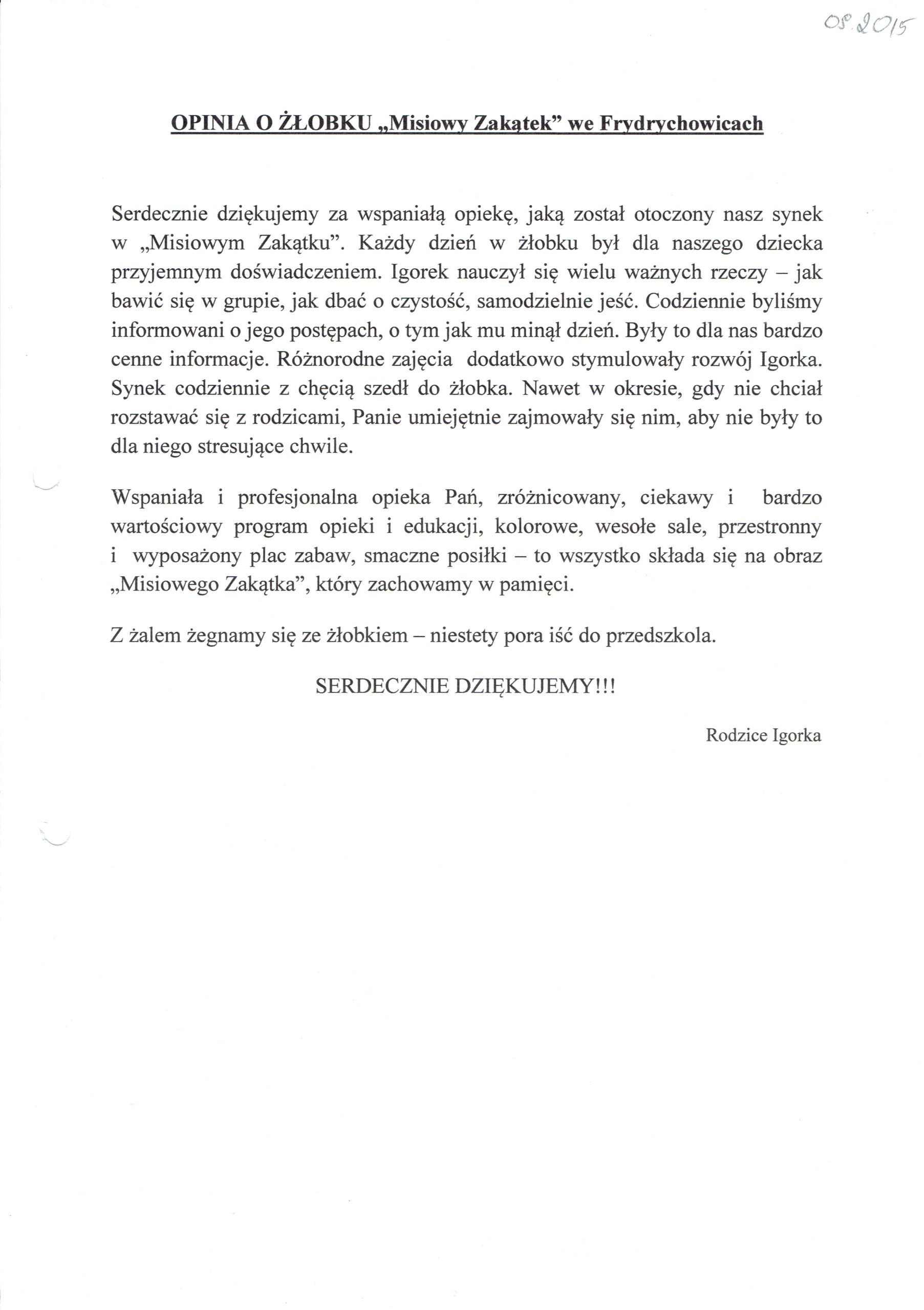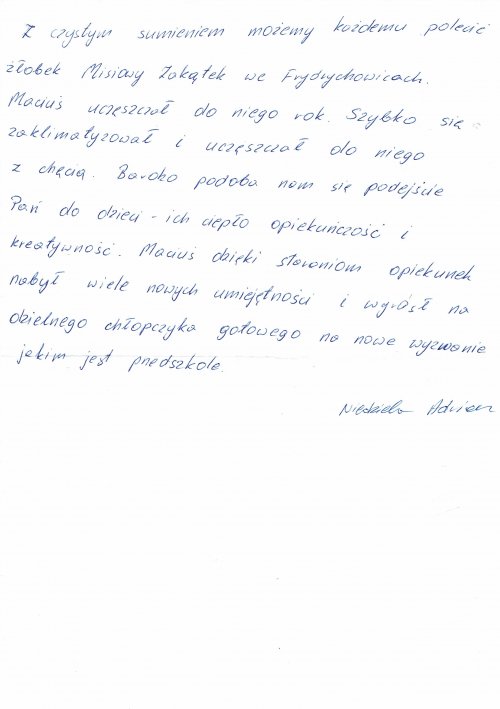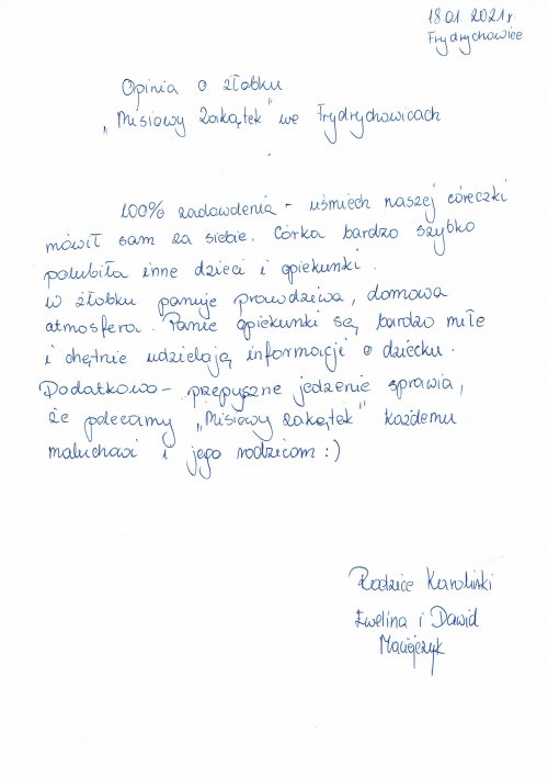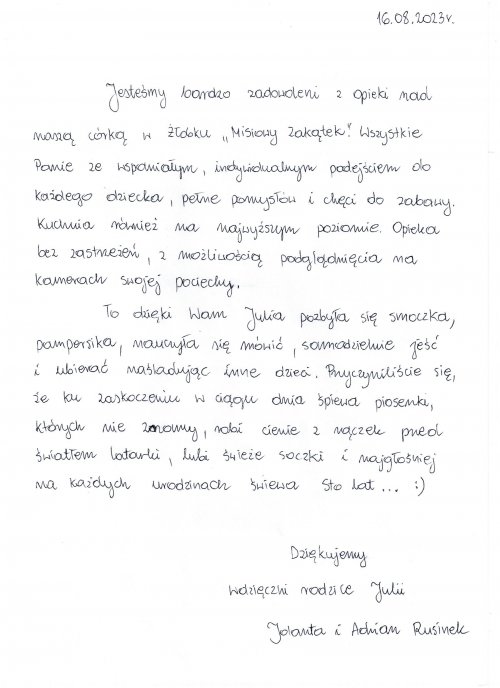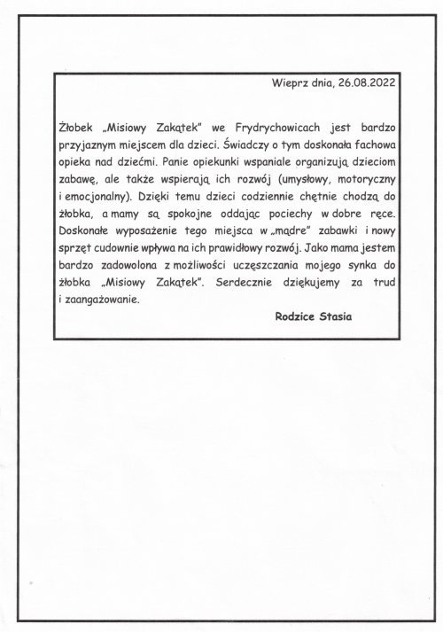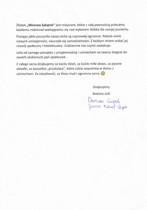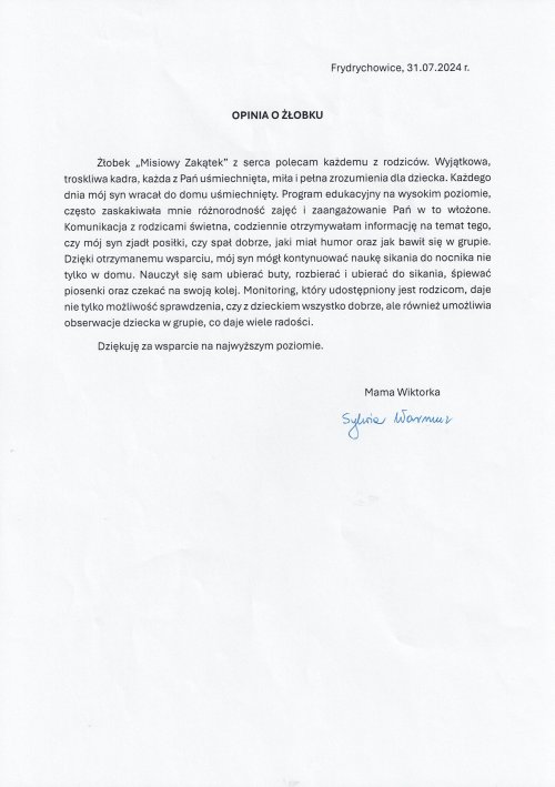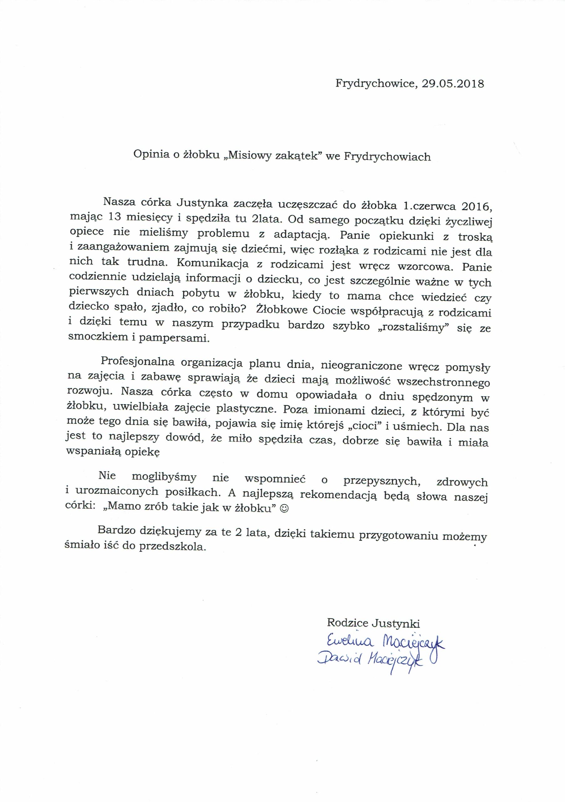 Opinie zadowolonych rodziców i uśmiechy naszych podopiecznych są dla nas najlepszym potwierdzeniem, że tworzymy miejsce pełne bezpieczeństwa, ciepła i radości.
